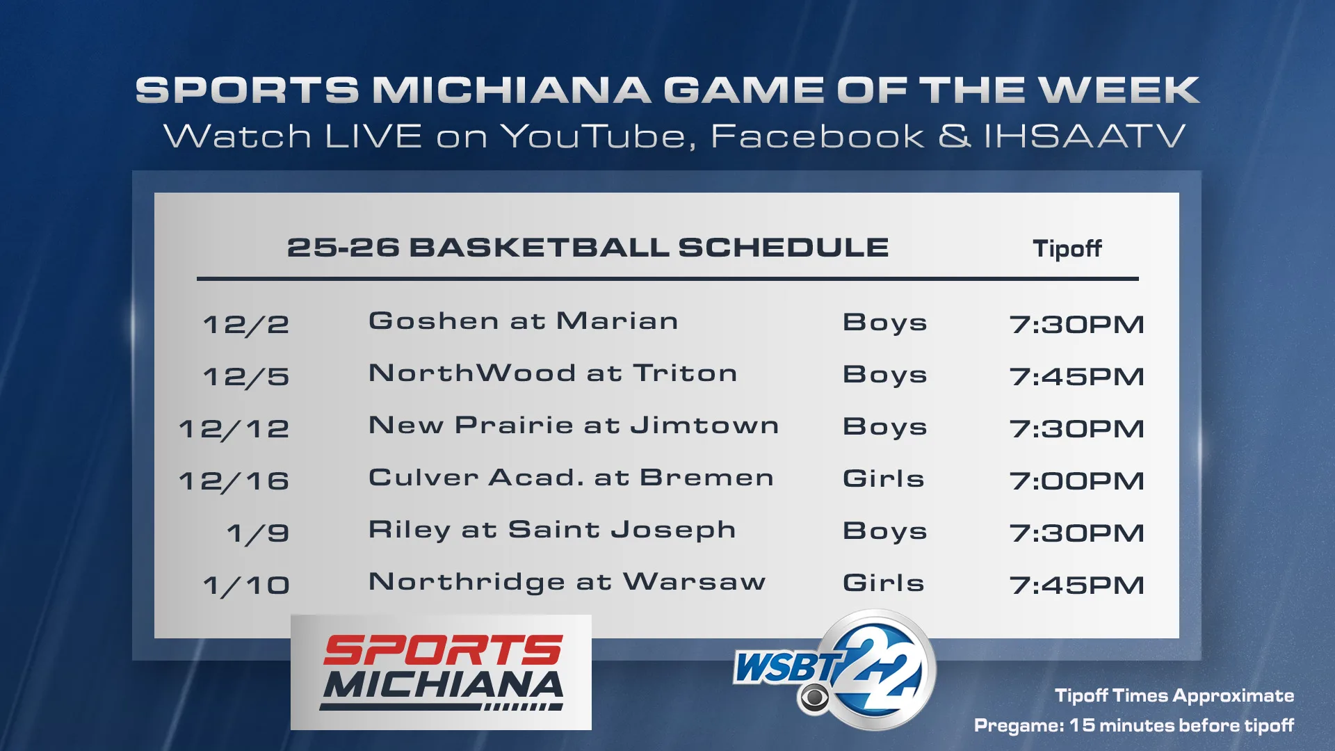 Sports Michiana Basketball Game of the Week Schedule