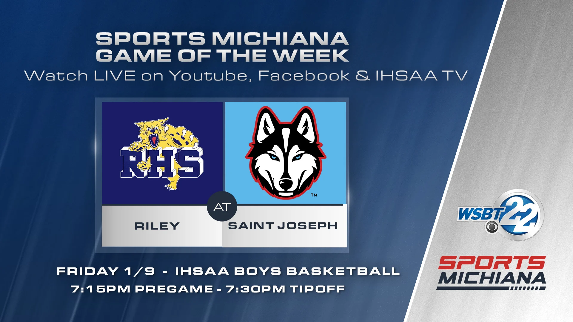 Saint Joseph hosts Riley in a blockbuster boys basketball battle Friday in our Sports Michiana Game of the Week.