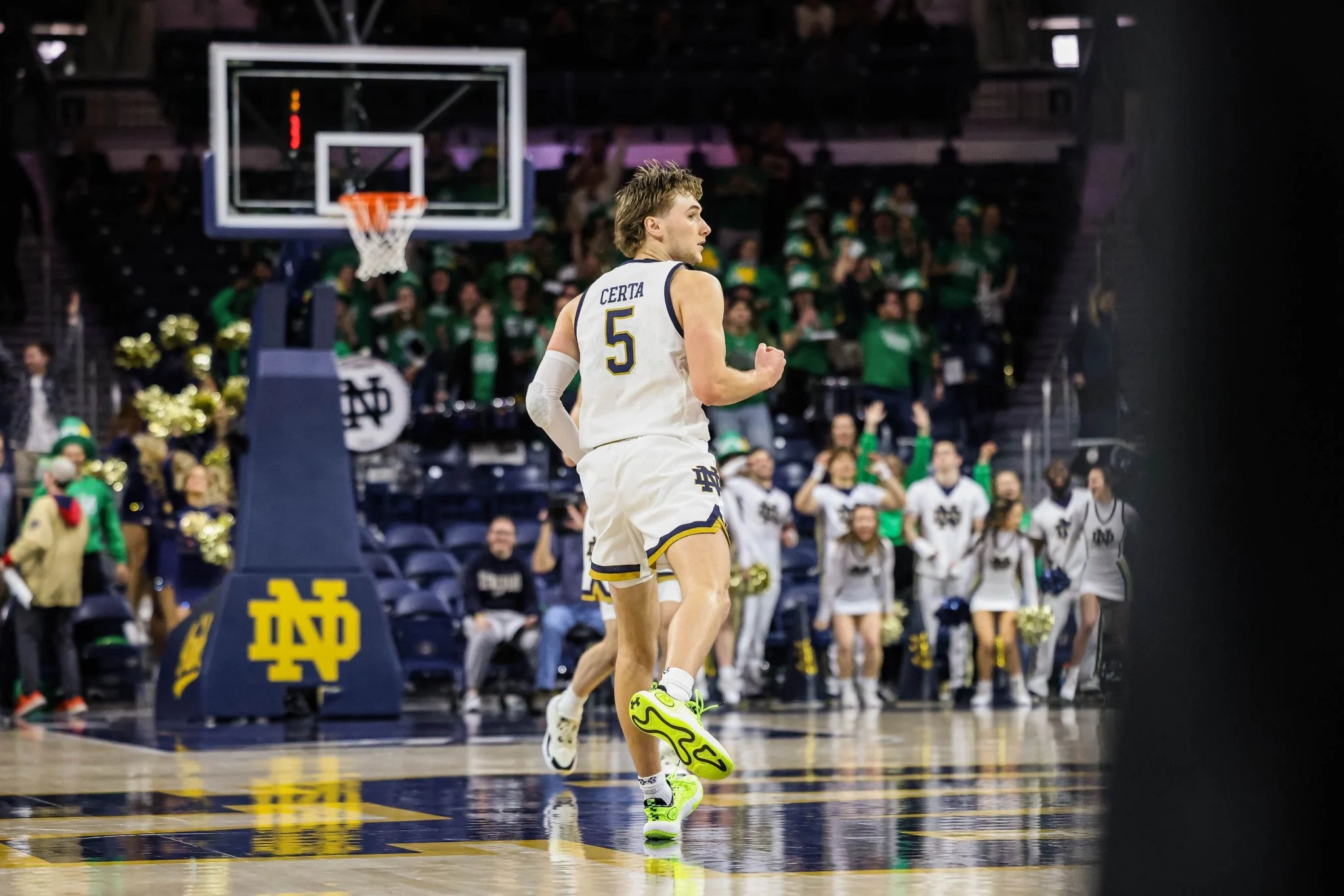The ending overshadows a game in which Notre Dame missed 10 free throws and countless layups, yet still managed to rally from a seven-point deficit with seven minutes remaining. A pair of Cole Certa three-pointers sparked a 9-0 Irish run that had Notre Dame leading 67-63 with 29 seconds remaining.